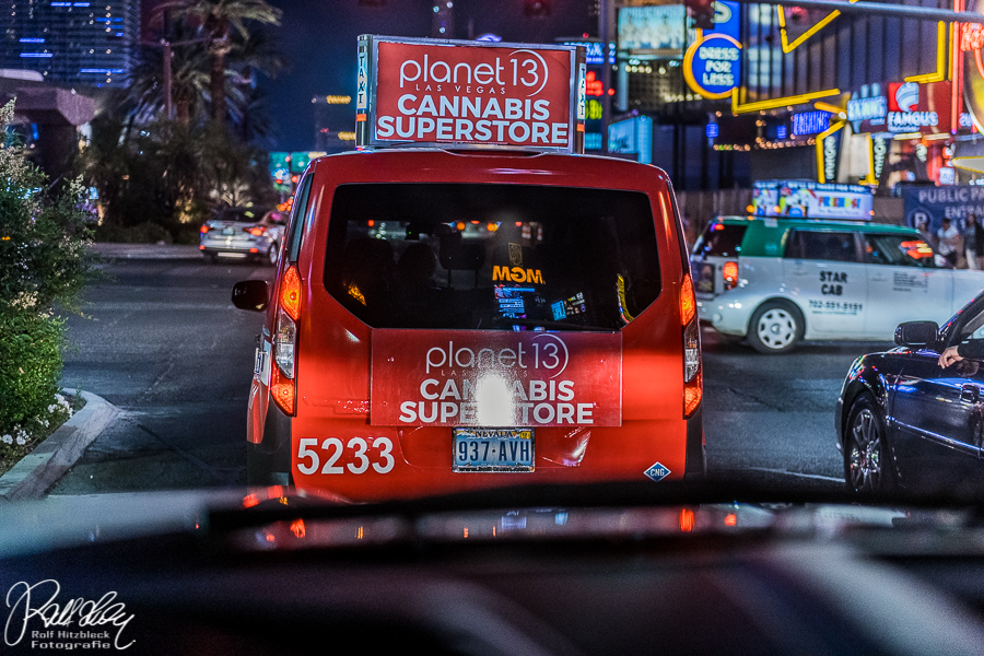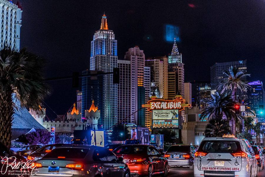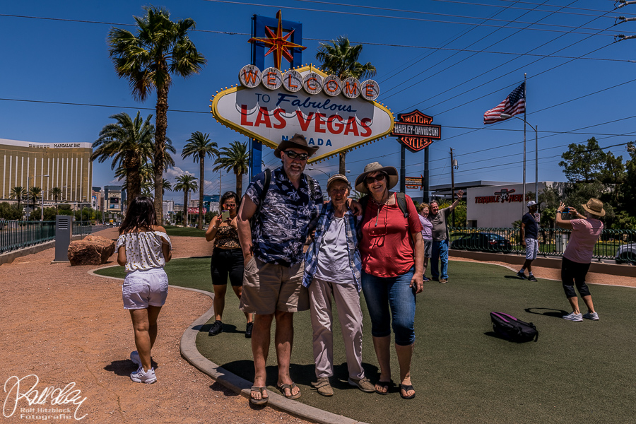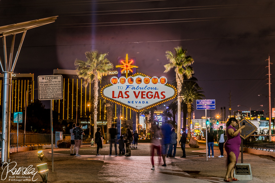 Da wir schon relativ nahe am Strip waren, nutzten wir die Gelegenheit, dem Las Vegas Sign einen Besuch abzustatten. Eingedenk des Ratschlages unseres Sohnes stellten wir uns nicht in die lange Schlange GERADE vor dem Zeichen, sondern schräg davor und ließen das Stativ die Kamera halten.
