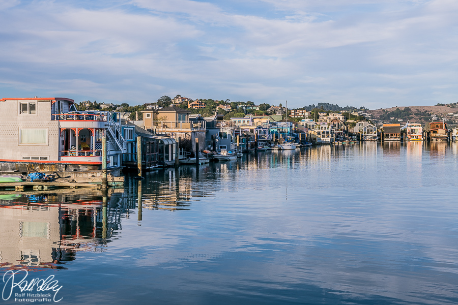 Eine halbe Stunde südlich liegt an der Richardson Bay die Stadt Sausalito. Sie ist bekannt durch die vielen Hausboote, die als Wohngegend auf dem Wasser genutzt wird. Sie haben übrigens keine Kellerwohnungen…