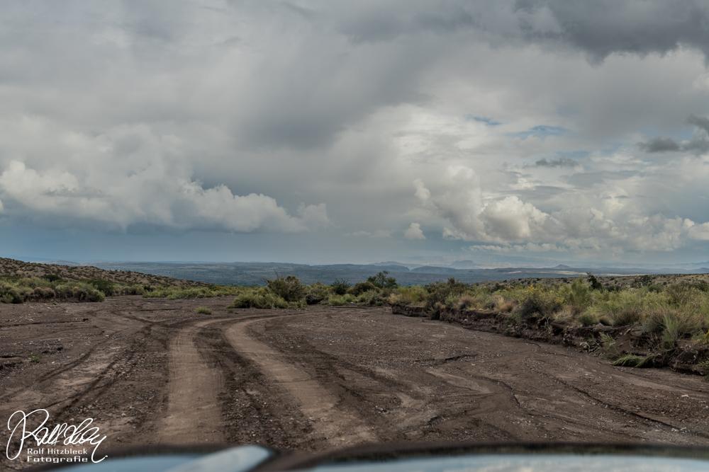 Wenn jetzt irgendwo in den Bergen eine Flashflood runtergeht und sich ausgerechnet diesen Weg sucht, tun wir gut daran, die Schnauze unseres Trucks in Fließrichtung auszurichten (damit wir sehen, wohin wir getrieben werden).