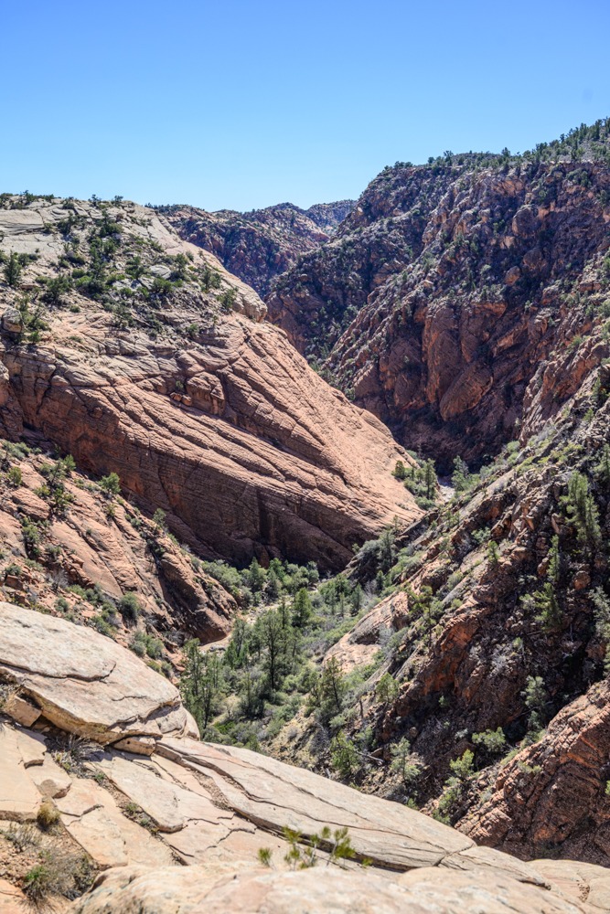Auf dem Weg dorthin kommen wir noch am Yankee Doodle Canyon vorbei, eine beeindruckende Schlucht mit ziemlich steil abfallenden Felswänden.