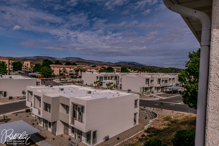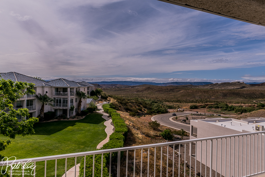 Guten Morgen, liebe Sonne, guten Morgen, St. George. Die Sonne scheint auf unser Domizil und von unserem Balkon können wir die Landschaft bewundern.