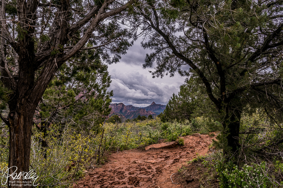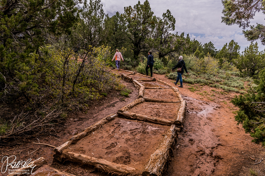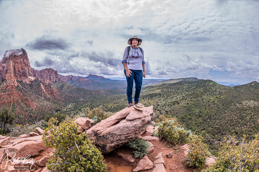 Am Ende der Straße, die zum Teil durch ein Pilot-Car begleitet wurde, beginnt dann der Timber Creek Overlook Trail. Er bietet auch fantastische Ausblicke auf die gegenüberliegenden Berge.