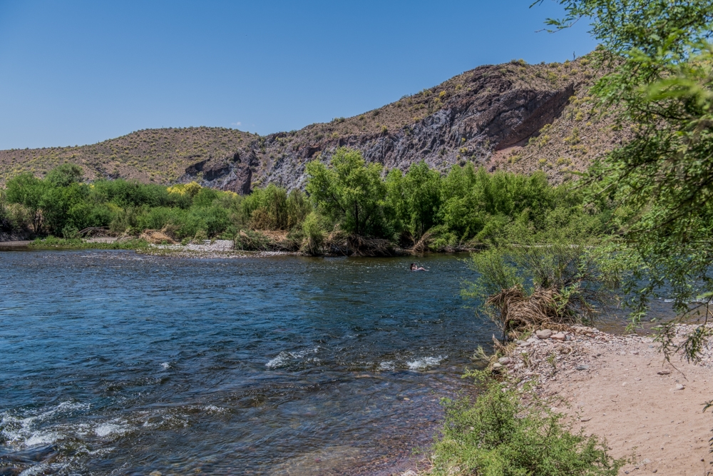 Welch ungewohnter Anblick, natürlich fließendes Wasser in der Wüste. Das haben sich viele andere auch gesagt, weshalb sie wohlorganisiert via Tubing den Fluss runtertreiben.