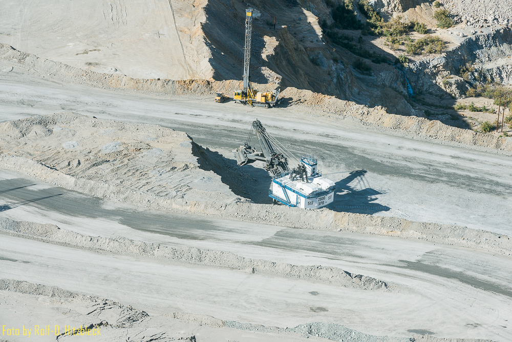 Von dort hatten wir mal einen ungetrübten Blick auf das riesige Loch in der Erde. Und auch auf die dort arbeitenden Bagger und Wagen.