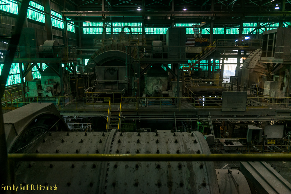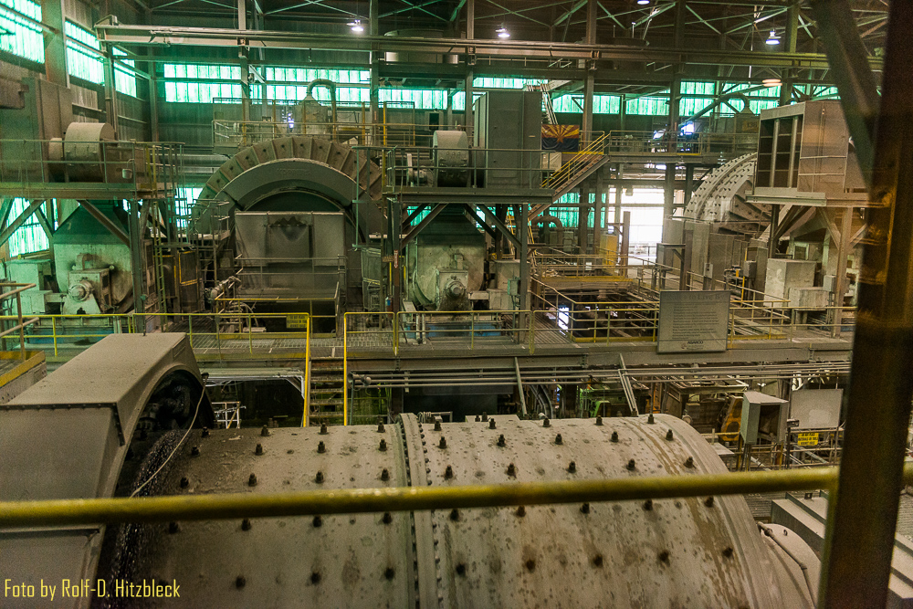 Dann ging es noch in die Mühle, wo das Gestein zerkleinert, gewaschen und aufbereitet wird. Irgendwann wird es in große Platten gegossen, die Anoden. Diese sind zu 99 % reines Kupfer und damit unbrauchbar. Mittels eines elektrochemischen Prozesses wird in einer speziellen Flüssigkeit eine hauchdünne Kupferkathode eingetaucht und durch den elektrischen Strom, der dort angelegt wird, scheidet sich das Kupfer an der Kathode ab, welches eine Reinheit von 99,9999 % hat. Der restliche Schlamm besteht dann aus Gold, Silber, Platin und einigen anderen selteneren Metallen. Das Silber, was daraus gewonnen wird, reicht, um die Stromrechnung in dem Jahr zu bezahlen.