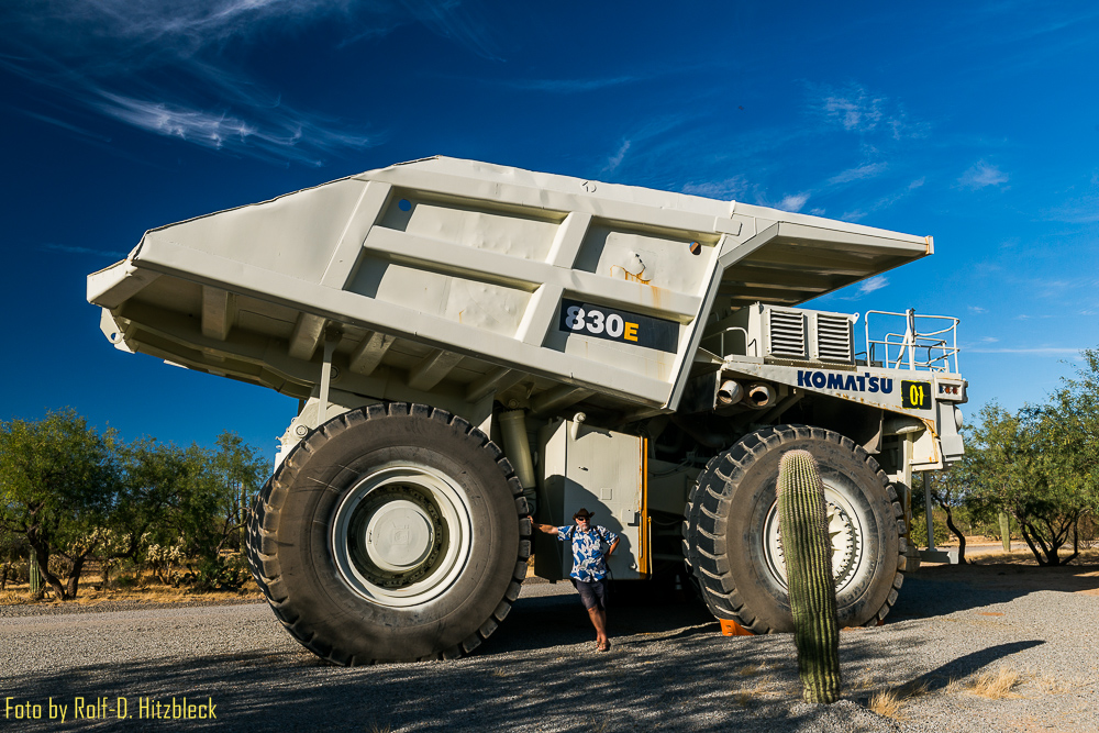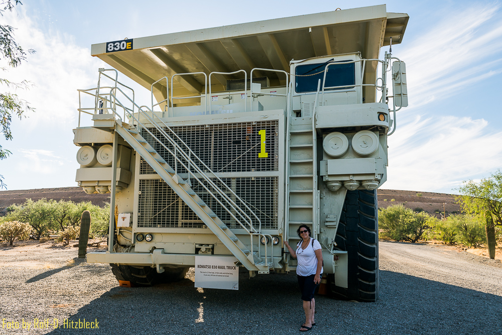 Auf dem Weg nach Süden (den wir dann doch noch einschlugen) landeten wir auf dem Interstate19, der bis nach Mexico führt. Witzig daran ist, dass an diesem Highway alle Entfernungsangaben in metrischen Einheiten angezeigt werden. Wohl als Vorbereitung für das Nachbarland. Einen Statepark erreichten wir auf diese Weise natürlich nicht, dafür aber die Mission Mine, eine noch aktive Kupfermine, wo wir gerade rechtzeitig für eine Führung (10 USD/Person) aufschlugen.