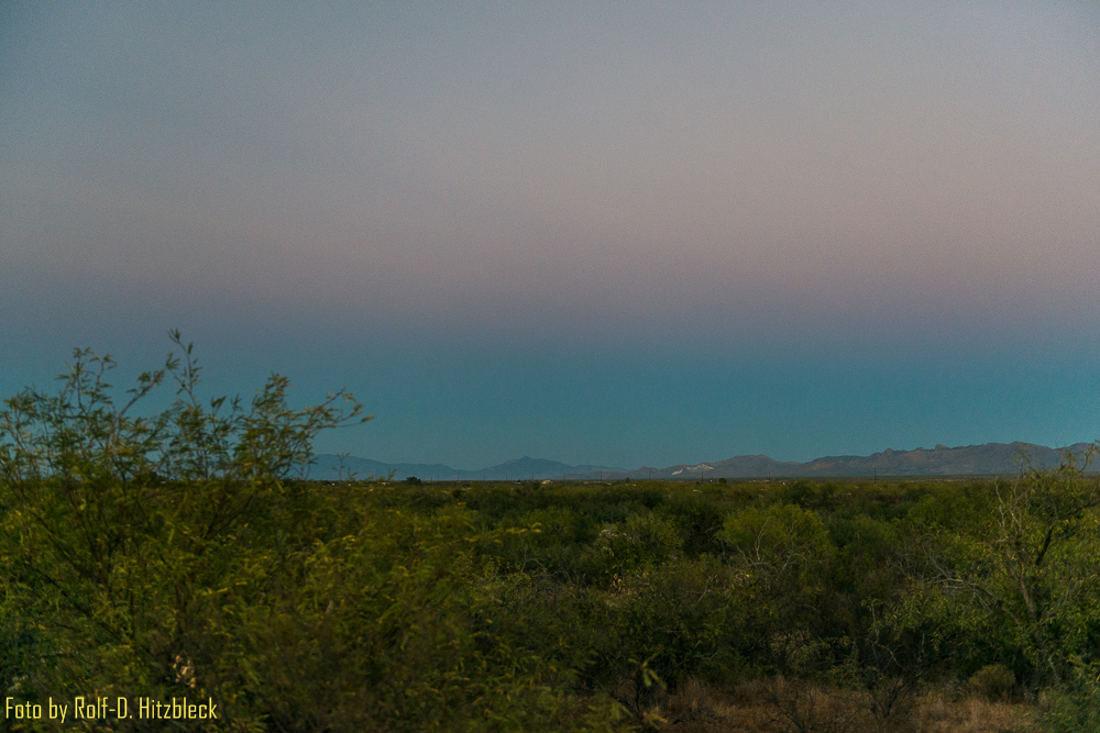 Die freundliche Dame im Statepark hatte uns zum Sternengucken das Whipple-Observatorium (oder zumindest die Straße dorthin) empfohlen. Also machten wir uns im schwindenden Büchsenlicht auf den Weg dorthin.