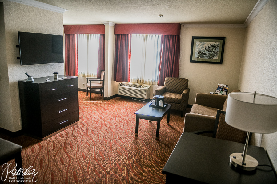 Dann gaben wir ins Navi unser Hotel ein und nach ein paar klitzekleinen Staus landeten wir im Hotel. Netterweise gab man uns eine Suite, obwohl wir nicht viel Zeit da verbringen würden.