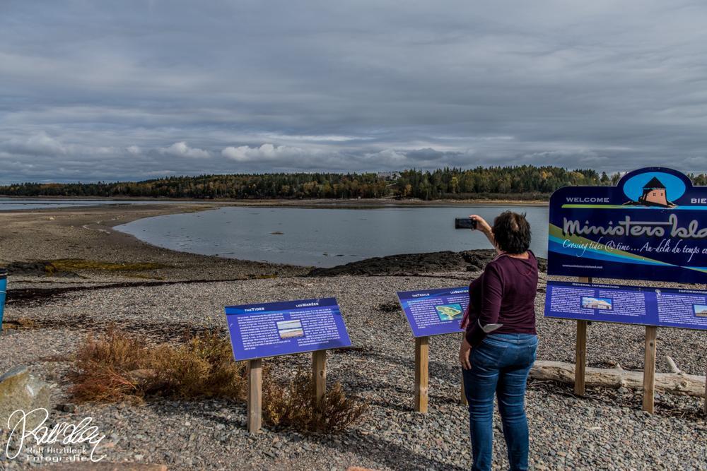 Auf der östlichen Seite der Halbinsel auf dem Weg nach Norden liegt die Insel Ministers Island. Besonderheit: Sie ist nicht immer zugängig. Nur bei Ebbe – und der Tidenhub hat hier mehrere Meter – liegt ein Streifen Meeresboden frei, über den man zur Insel laufen oder auch fahren kann.