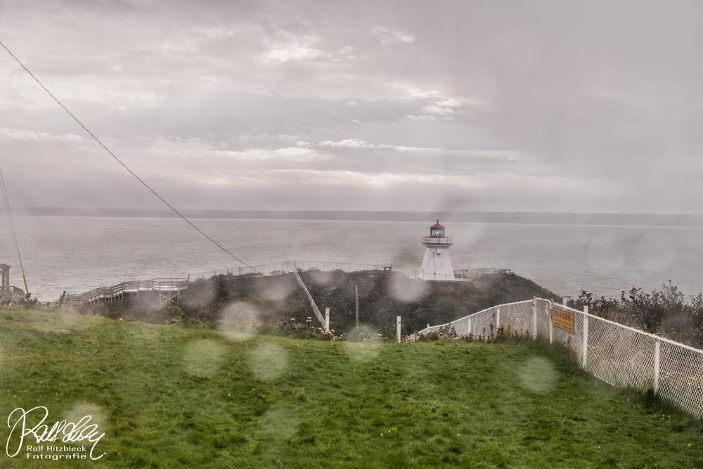 Es ging einige Kilometer über mehr oder weniger schlechte Straße, bis wir oben auf dem Kap standen, welches den ältesten Leuchtturm in New Brunswick hostet. Sieht man ihm gar nicht an. OK, so nah sind wir auch nicht herangekommen, da uns nicht nach einer Dusche zumute war.