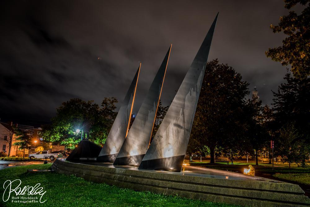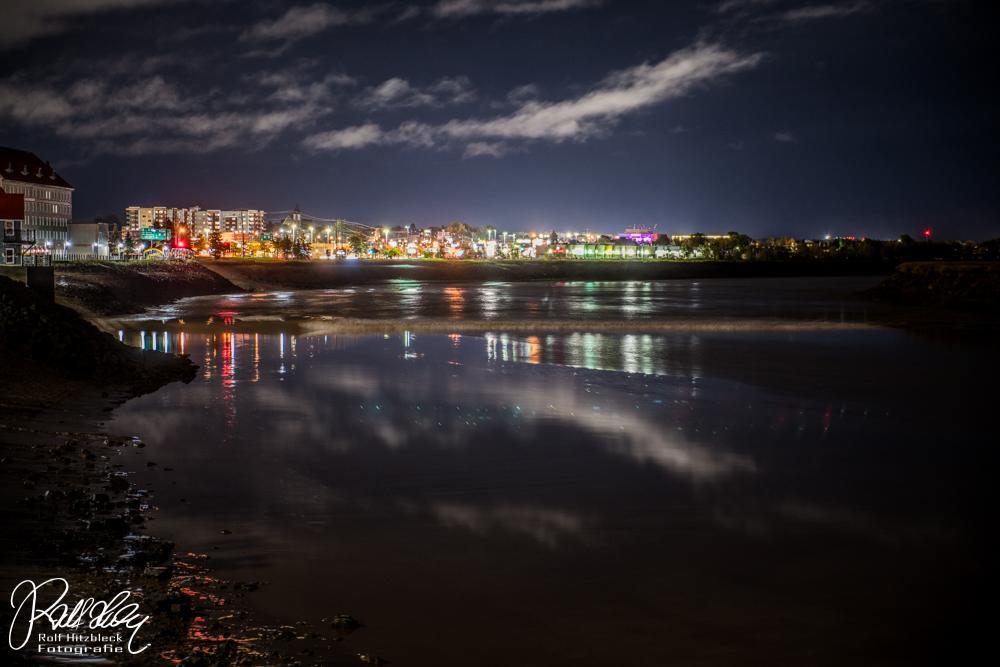 Eigentlich könnte der Tag hier abgeschlossen werden, aber ich hatte mir noch ein Highlight für den Abend aufgehoben: Ich wollte von der gegenüberliegenden Seite des Flusses die „Skyline“ von Moncton bei Nacht fotografieren. Wir waren ja mittlerweile zweimal dort auf dem Weg nach Fundy vorbeigekommen und ich musste mir „nur“ noch ein Eckchen raussuchen mit freier Sicht vom Hügel aus.