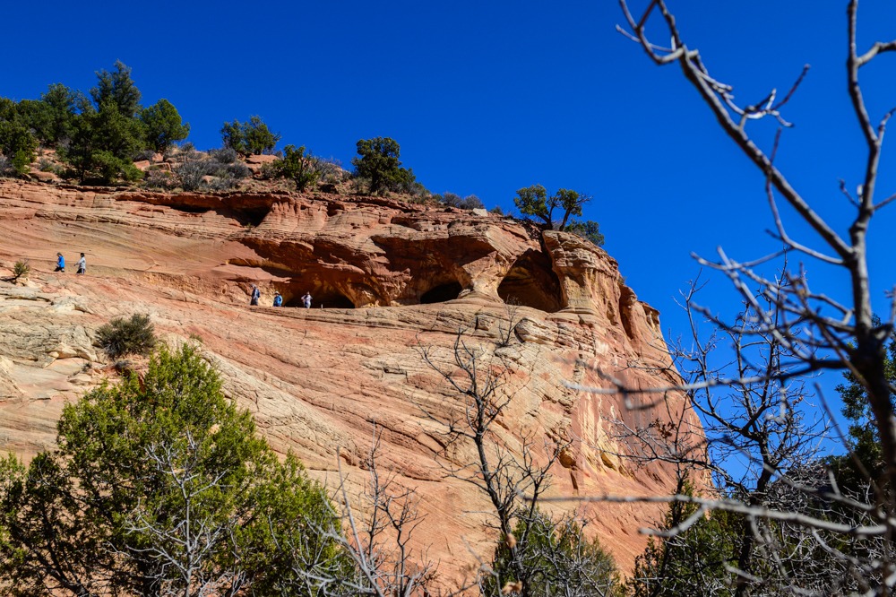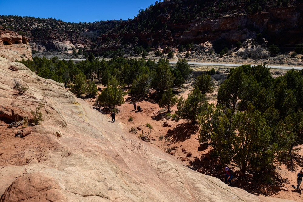 Dann schließlich standen wir vor dem Aufstieg. Ein Seil baumelte die Schräge hinab. Das muss wohl für Menschen ohne vernünftige Schuhe sein. Denn meine Merrells klebten wie üblich auf dem Sandstein, so dass ich, ohne die Kamera aus der Hand zu legen, mühelos auf Höhe der Höhlen ankam.