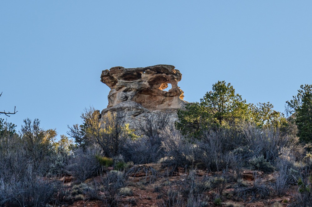 Wieder ein paar Meilen weiter, plötzlich auf der linken Seite: Die Inchworm Arch. Die war vorher noch nicht dagewesen. Oder kann man sie nur sehen, wenn man von Norden kommt?