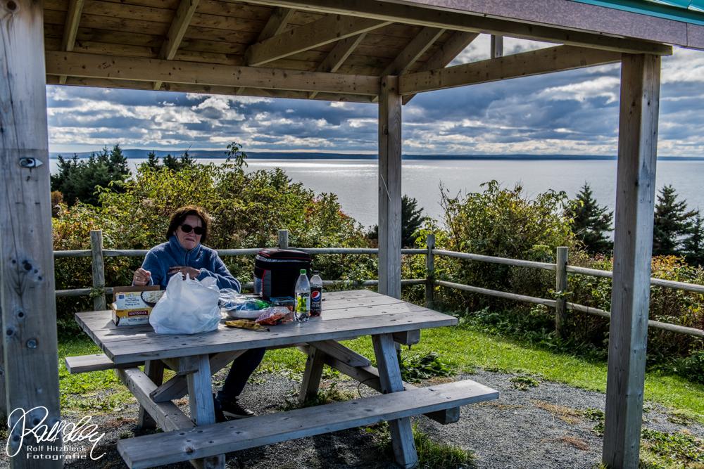 Denn die beste Reiseplanerin hat für heute noch ein straffes Programm eingeplant: Den Skyline Trail im Cape Breton Highlands National Park. Das bedeutet ca. 20-25 min Fahrt, Eintrittskarte kaufen und dann noch ca. eine Stunde laufen. DAS wird sportlich.
