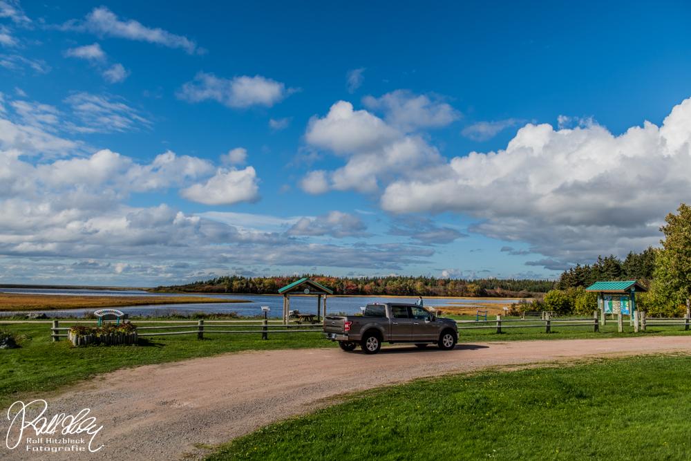 On the road again. Wir müssen unser kleines Studio – mit dem riesigen Schreibtisch (habe gar kein Foto davon gemacht) verlassen. Wir begeben uns auf die Reise auf die Insel Cape Breton Island. Reine Fahrzeit knapp 5 Stunden. Aber wer uns kennt, weiß, dass es nicht dabei bleibt. Zu oft und zu gerne geraten wir auf Abwege. Vorher noch nebenan zum Walmart, denn Lebensmittelläden dürften im Norden der Insel rar gesät sein.