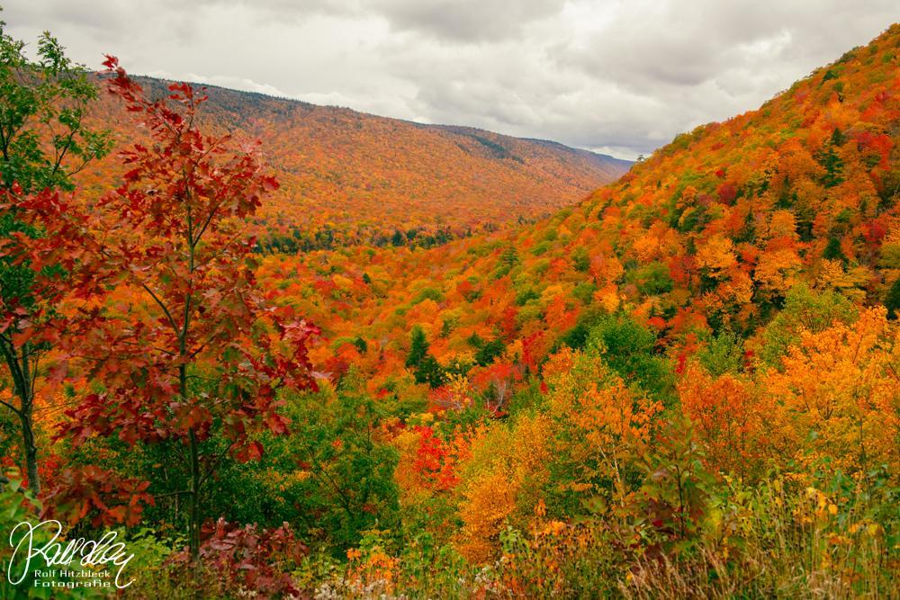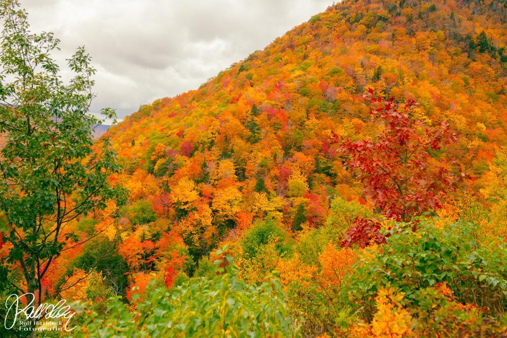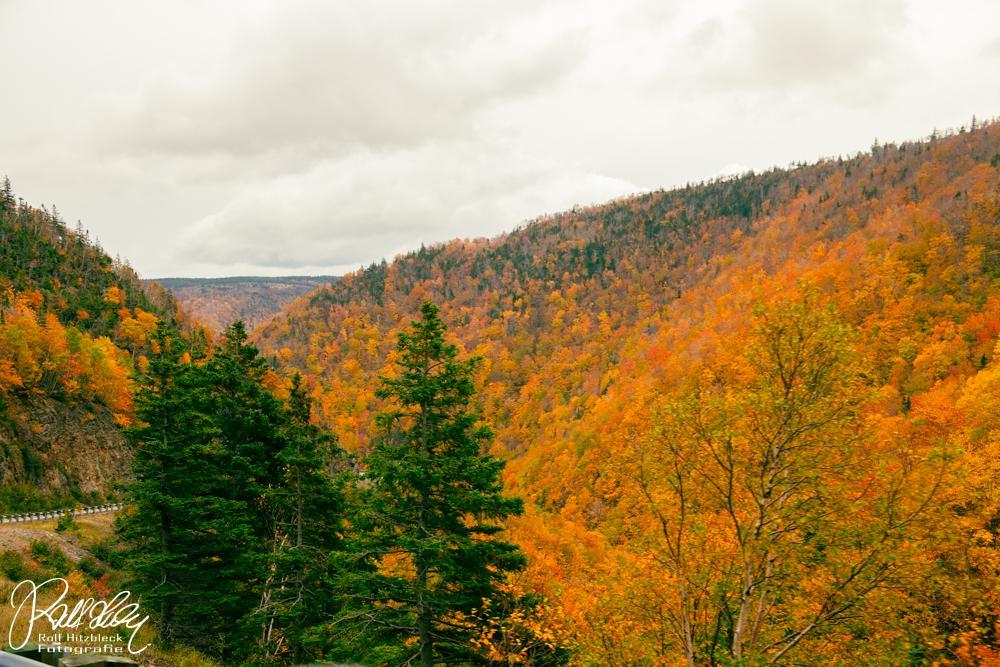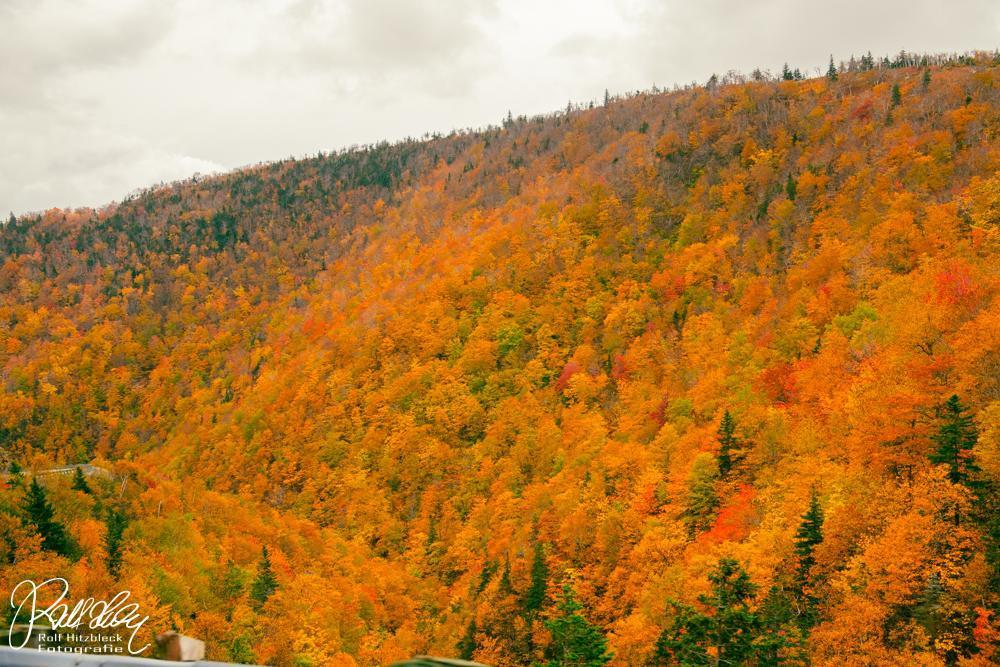 Und es geht weiter auf der Cabot-Trail-Road. Hier kommen wir etwas in die Berge (der „Pass“ liegt auf ca. 350 m Höhe, die Sauerstoffmasken brauchen wir NOCH nicht). Und hier erschlagen uns die Farben des Herbstes. Waren die Wolken über uns die vielen Variationen der fifty shades of grey, so kann man hier getrost von fifty shades of orange reden. So etwas habt ihr noch nicht gesehen. Ich jedenfalls noch nicht.