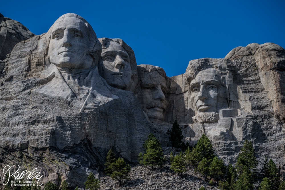 Einmal holen wir die Köpfe von George Washington, Thomas Jefferson, Theodor Roosevelt und Abraham Lincoln näher ran.