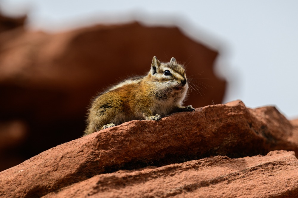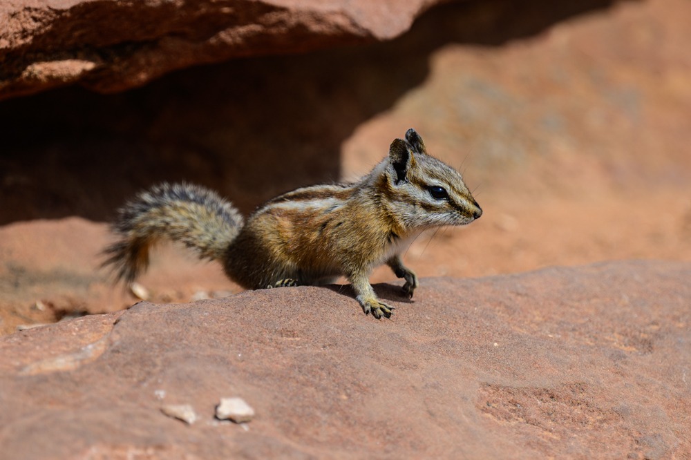 Mehrere Skipmunks sind wieselflink unterwegs auf der Suche nach etwas Essbarem und einer ist auf einem hohen Felsen abkommandiert, um Wache zu halten. Ich beobachte ihn eine ganze Zeit, wie er ständig eine Art Zirpen von sich gibt und dabei mit dem Schwanz auf den Boden schlägt.