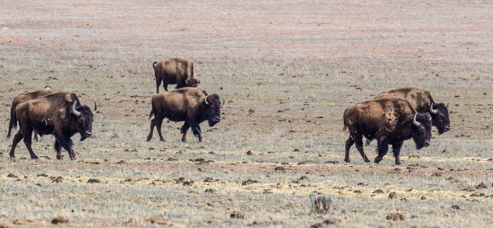 Wieder zurück auf der Straße ging es gemütlich nach Kanab. Plötzlich auf der rechten Seite (waren auf der Hinfahrt noch nicht da gewesen) eine Büffelherde.