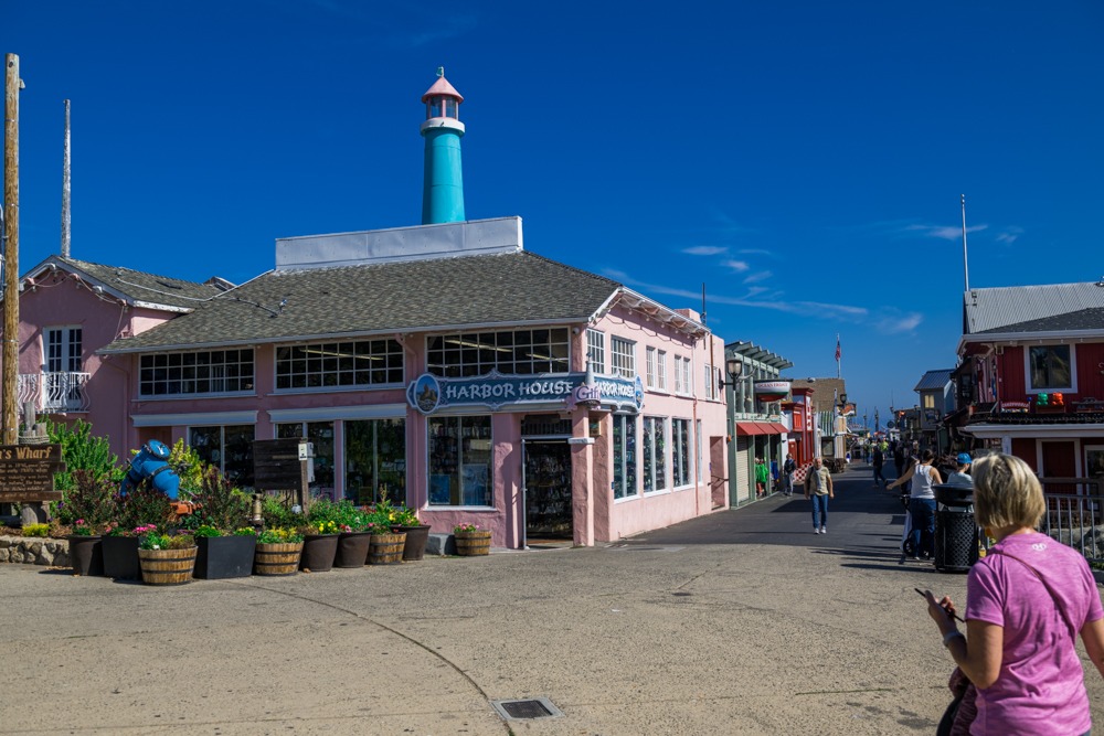 Da wir den Nebel im Zimmer einfach ausgesessen hatten, kamen wir bei schönstem Wetter auf dem Pier an. Erstmal ein Parkticket ziehen und dann gemütlich über die Holzplanken an den gesamten Andenkenläden, Fressbuden und was sonst noch da rum steht, vorbeilatschen.