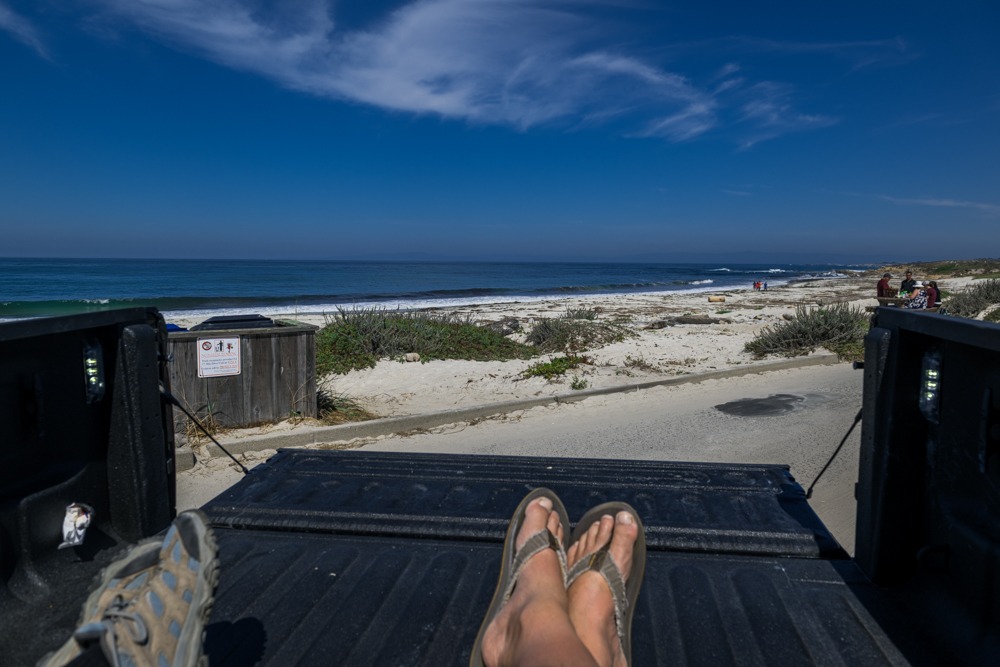 Es geht zuerst zum Moss Beach. Durch unsere Trödelei und den Ticketkauf ist es mittlerweile Mittag geworden und wir richten die Ladefläche unseres Trucks für ein Päuschen ein.