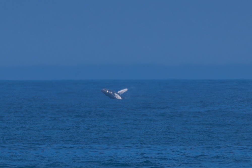 Hinterher bei der Entwicklung und Postproduktion kann man wage erkennen, dass es sich vermutlich um einen Humpback Wal gehandelt hat, der dort solche Kapriolen im Wasser vollführt hat. Ich hoffe, dass wir morgen deutlich näher rankommen.