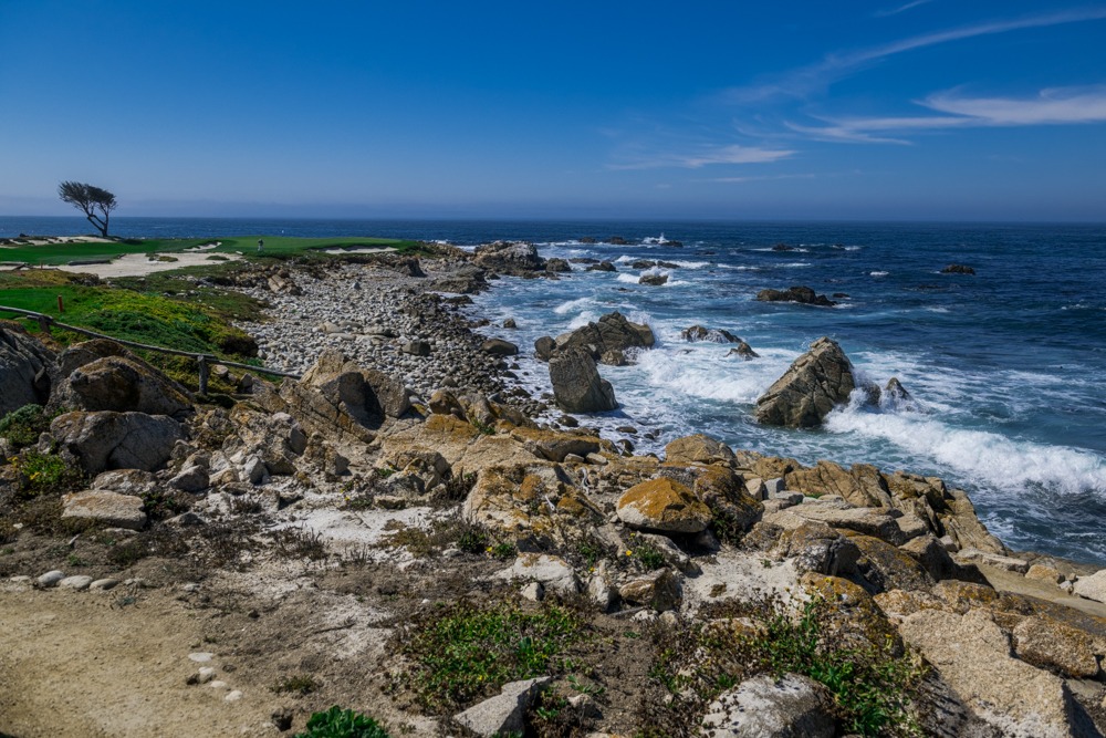 Anschließend machten wir uns auf den Weg an der Küste entlang. Zuerst durch die Cannery Row, bekannt durch John Steinbecks „Straße der Ölsardinen“ und dann vorbei am Lovers Point und den felsigen Stränden vor Pacific Grove bis zum Gate des 17 Mile Drive. Dieser ist kostenpflichtig und wir entrichteten den Straßenzoll von 12 USD.