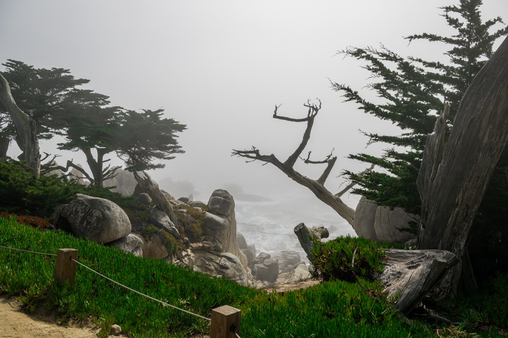 Etwas weiter an Küste entlang stehen die Ghost Trees des Pescadero Points an der Straße. Mir kommt als erstes der Gespensterwald in Nienhagen in McPom in den Sinn, aber eine Ähnlichkeit gibt es da nicht.