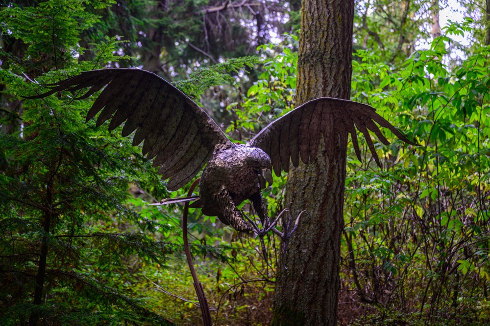 Nicht weit entfernt von Coupeville liegt der Price Sculpture Forest. Der Park war ursprünglich das Grundstück von Scott Price. Er hat daraus einen kostenlosen Skulpturenpark gemacht. Man kann auf einem einen Kilometer langen Rundweg diverse Kunstinstallationen bewundern. Zu jeder Skulptur gibt es zumindest einen Namen.