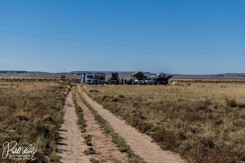 Und siehe da: Ein Parkplatz war bei Google Maps ausgewiesen als Trailhead, das ist schon ein Anfang. Diese lag ca. 60 Meilen südlich von Farmington und ging zuerst über eine gut ausgebaute Schnellstraße, später über mehr oder weniger gut gegradete Dirtroad. Diese Einsamkeit, diese Ruhe. Sind wir hier überhaupt richtig? Man weiß es nicht. Wildpferde kreuzten unsere Straße (wir vermuteten, dass es wilde Pferde sind und wurden später anhand der Spuren darin bestätigt)