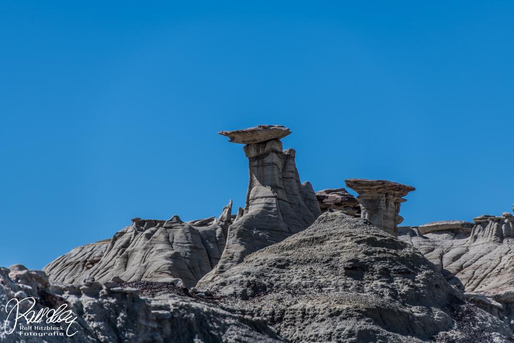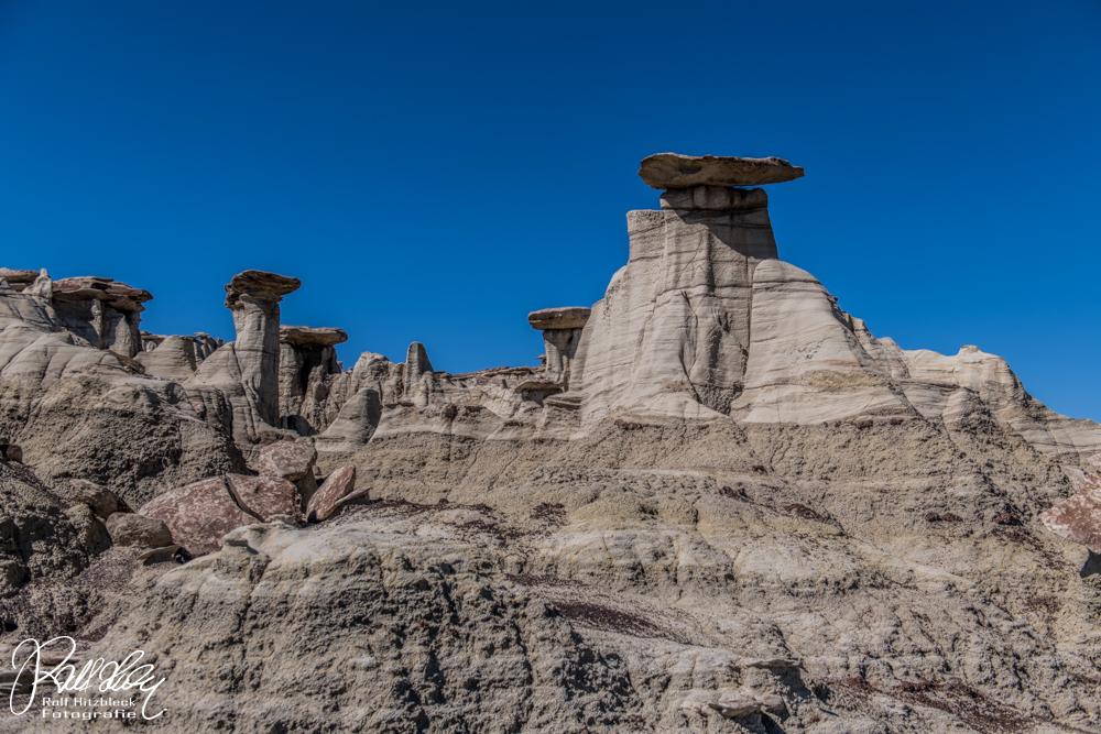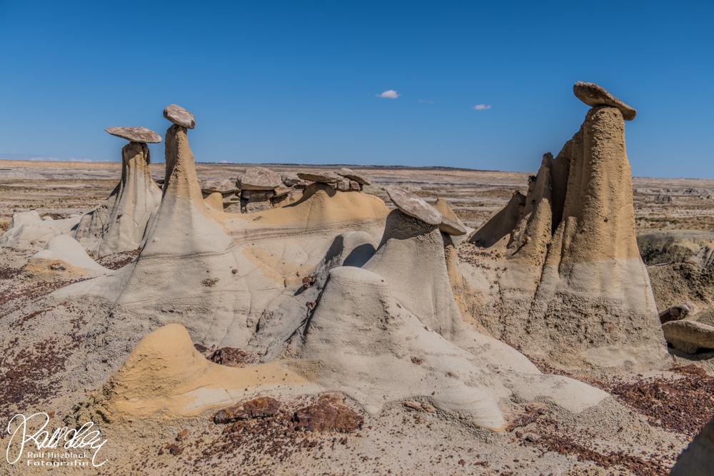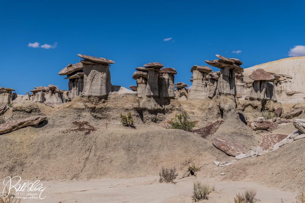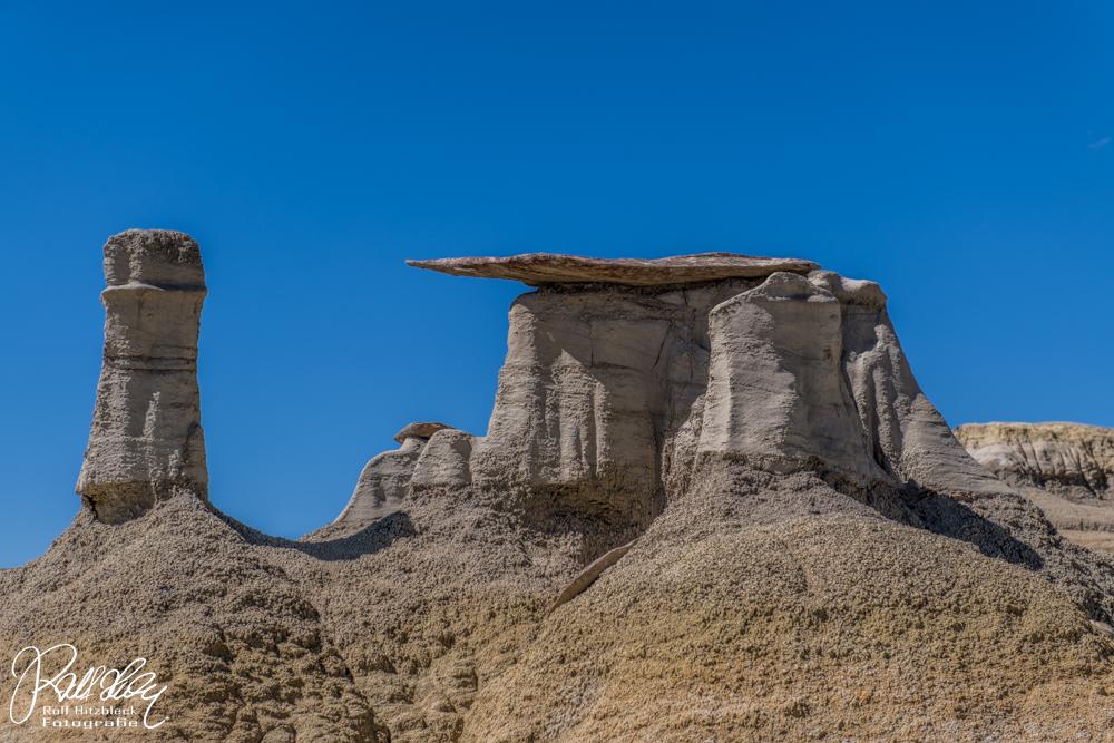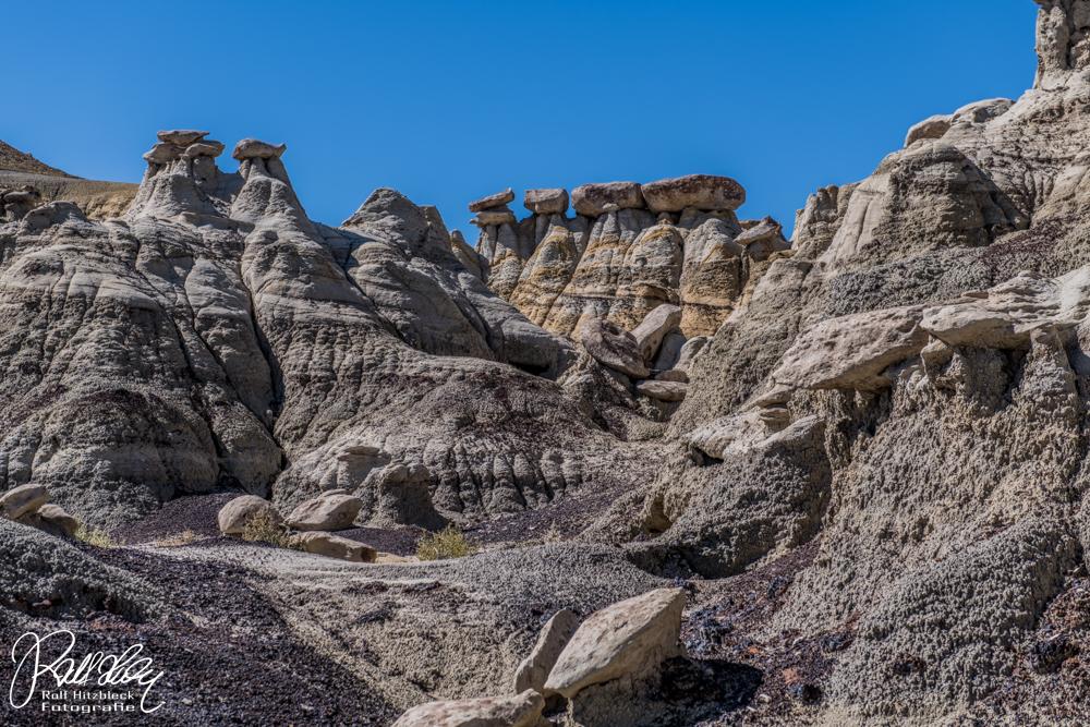 Hoodoos in allen Formen und auch Farben, mal locker aufgestapelt, mal auf dem Boden liegend, weil die Erosion das unterliegende Erdreich abgetragen hatte.