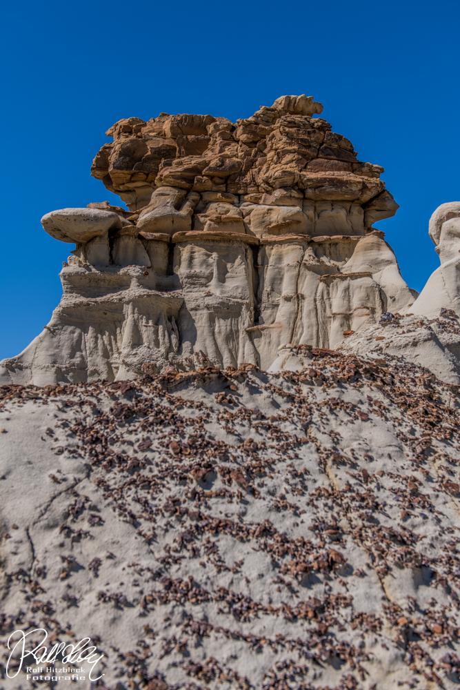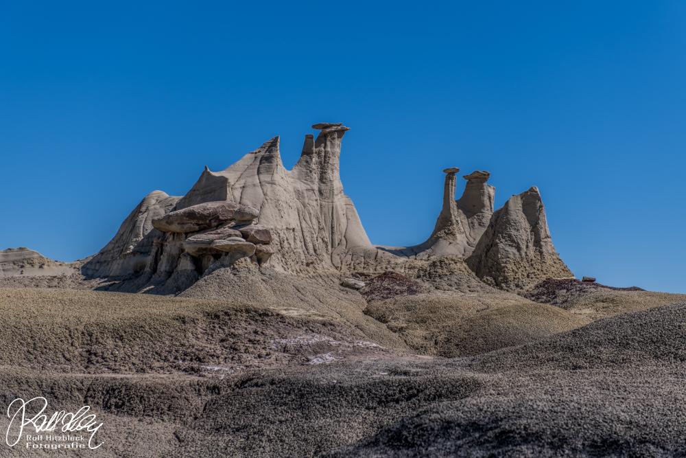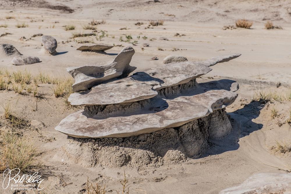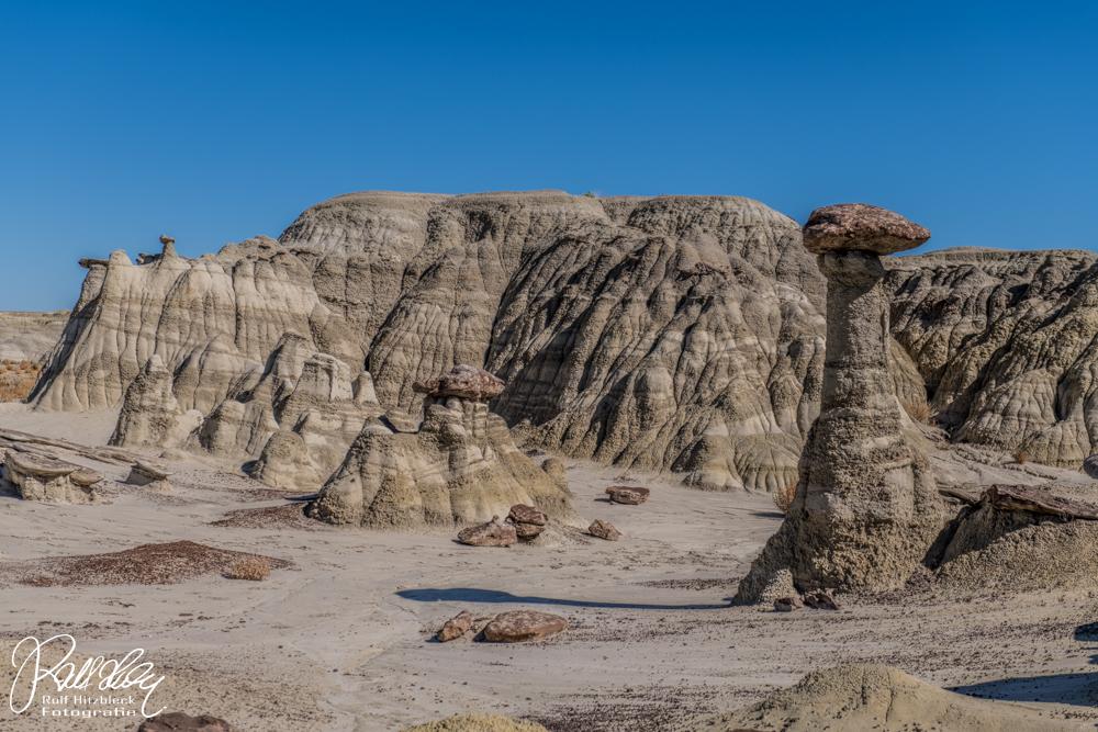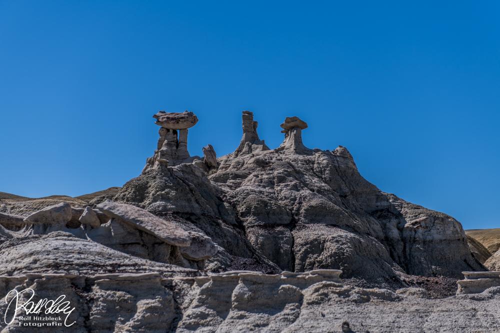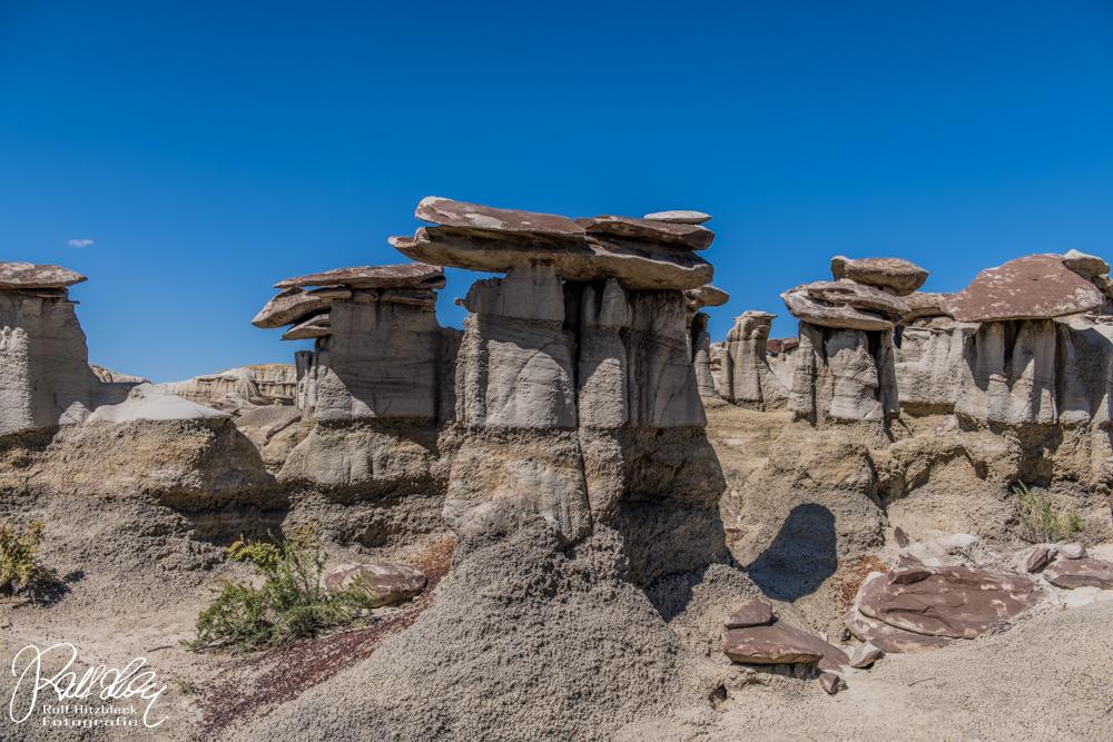 Hoodoos in allen Formen und auch Farben, mal locker aufgestapelt, mal auf dem Boden liegend, weil die Erosion das unterliegende Erdreich abgetragen hatte.