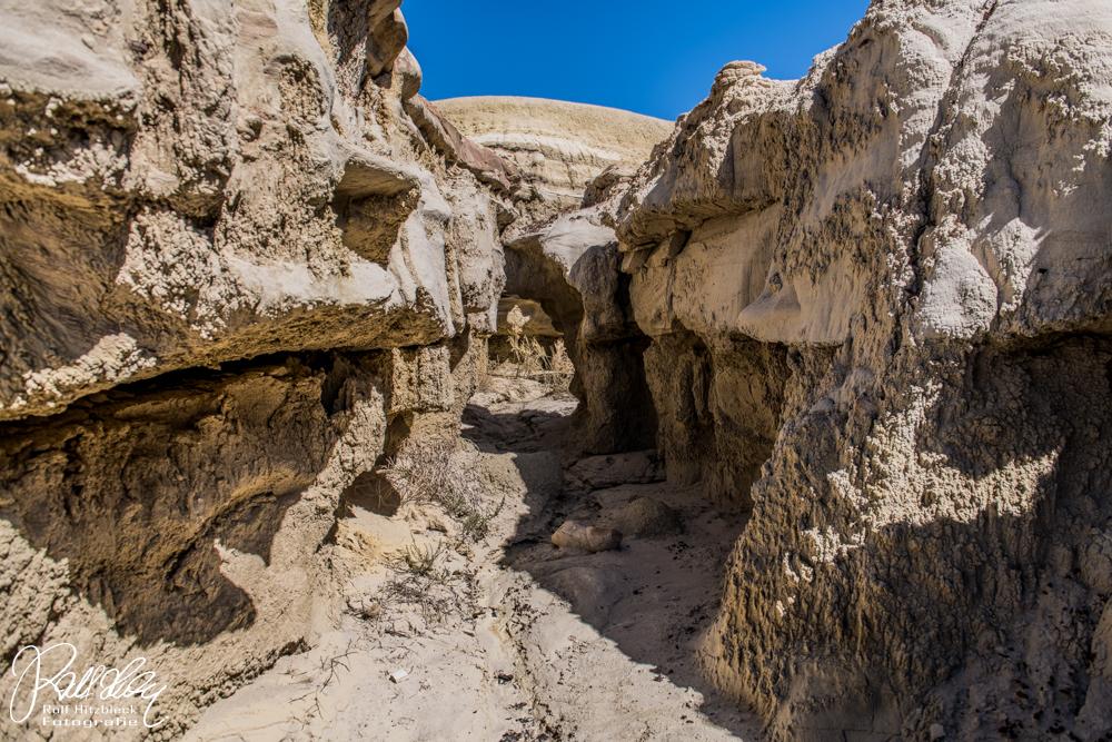 Unser Tagesziel für heute: Die Bisti Badlands. Ca. 50 Meilen südlich von Farmington erstreckt sich ein raues, unwirtliches Land, welches als Wilderness Area ausgewiesen ist und wo nur wenige Straßen ins Innere führen. Wohl um diese Landschaft vor Vandalismus zu schützen – warum macht man nicht einen Nationalpark oder ein National Monument daraus? – sind die Informationen darüber sehr spärlich und die zuführenden Straßen nicht unbedingt highway-tauglich. Am Visitor Center hatte man uns mit einem Blatt abgespeist, welche eher davon abhalten als einladen sollte. Also gingen wir im Netz der Netze auf die Suche und rafften an Beschreibungen zusammen, was irgendwie zu bekommen war.