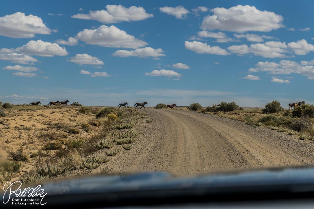 Zwischendurch wieder ein paar Wildpferde, die leider in großer Entfernung unseren Weg kreuzten.