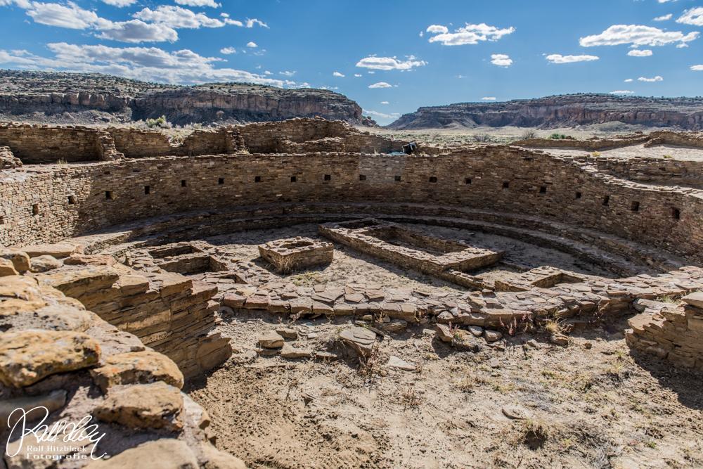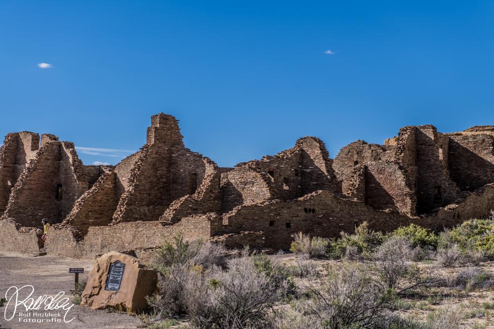 Aber diesmal strahlte die Sonne vom blauen Himmel und wir „bummelten“ mit letzten Kräften an den Ruinen des Pueblo Bonito vorbei.
