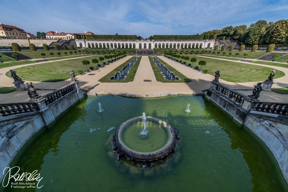 Nachdem wir die obligatorische Parkplatzgebühr entrichtet hatten – braucht man den Soli eigentlich noch? – bezahlten wir auch noch den Parkeintritt und standen in einem wunderschönen Garten mit zwei Orangerien und einem Mini-Schloss.