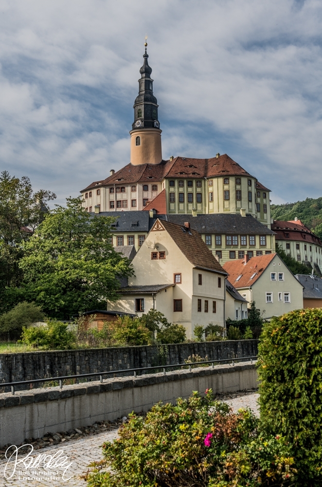 Ca. 10 Minuten entfernt liegt noch das Schloss Weesenstein, logischerweise wieder mit einem kostenpflichtigen Parkplatz und vermutlich auch kostenpflichtigem Eintritt versehen. Das Schloss selbst ragt steil in einem engen Flusstal empor und sieht von außen schon schön aus. Mal sehen, vielleicht kommen wir wieder und werfen einen Blick hinein.