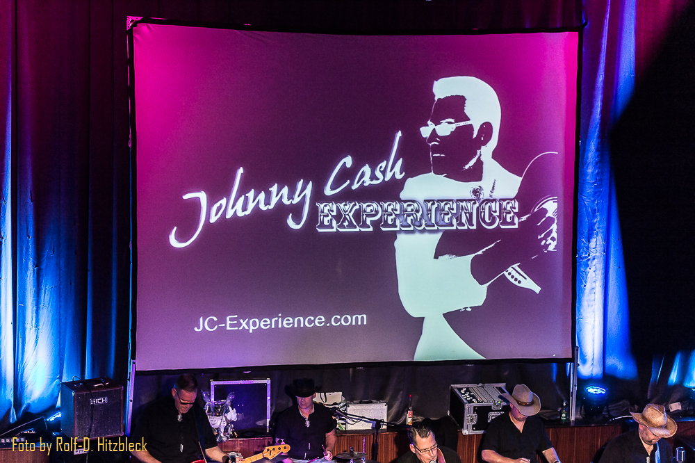 Los geht es mit Johnny Cash Experience (und noch mal Tom als Drummer). Das Case-Drum leuchtete