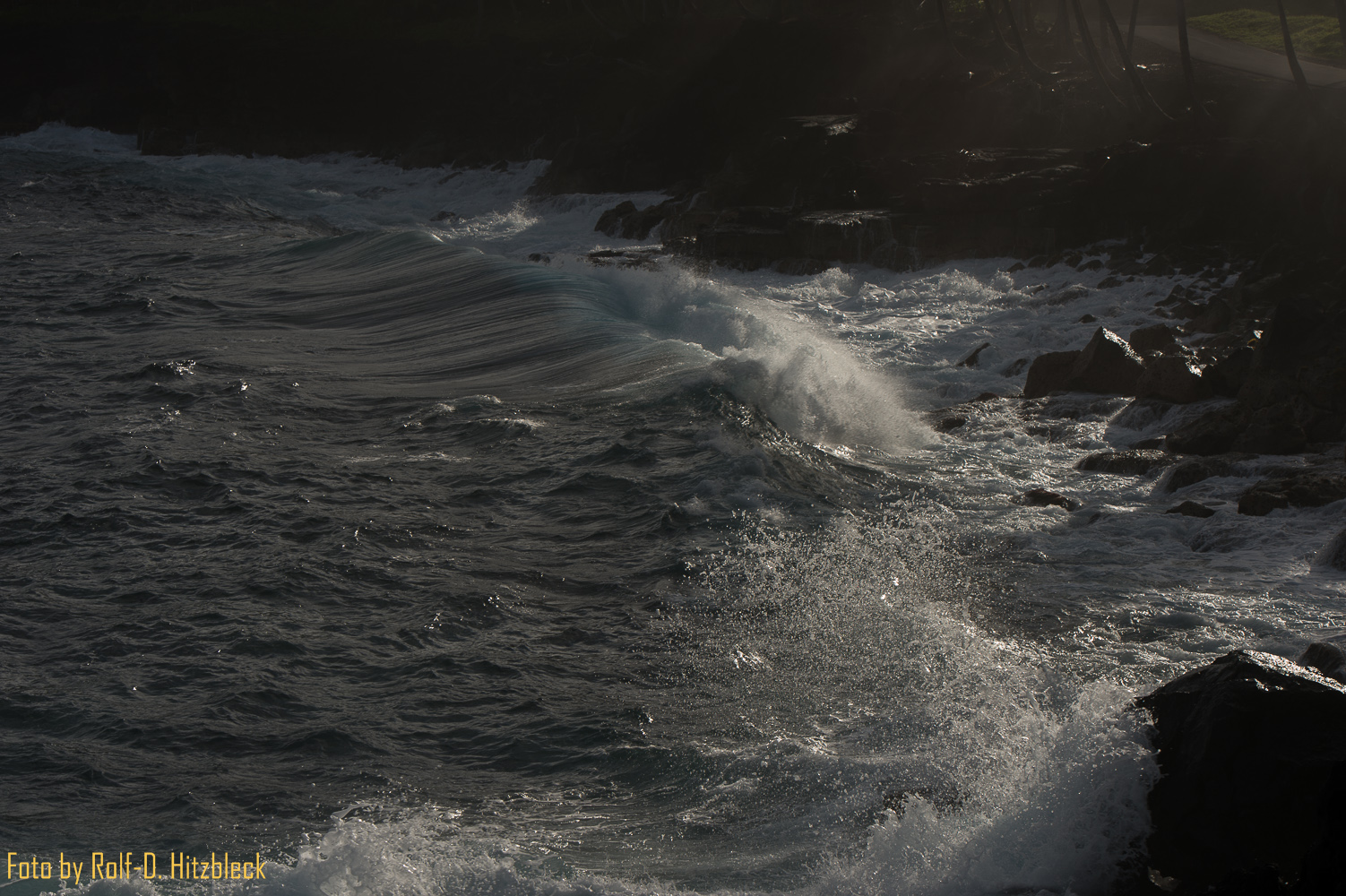 Es ist schon tierisch, im Urlaub erstmal spät ins Bett zu kommen und dann auch noch wieder früh aufzustehen und in Hektik zu verfallen. Aber wir hatten uns vorgenommen, vom Pu’ukohola Heiau aus die Kanu-Tour „Catch the Waves“ mitzunehmen. Und die fingen stündlich um 8.30 an.