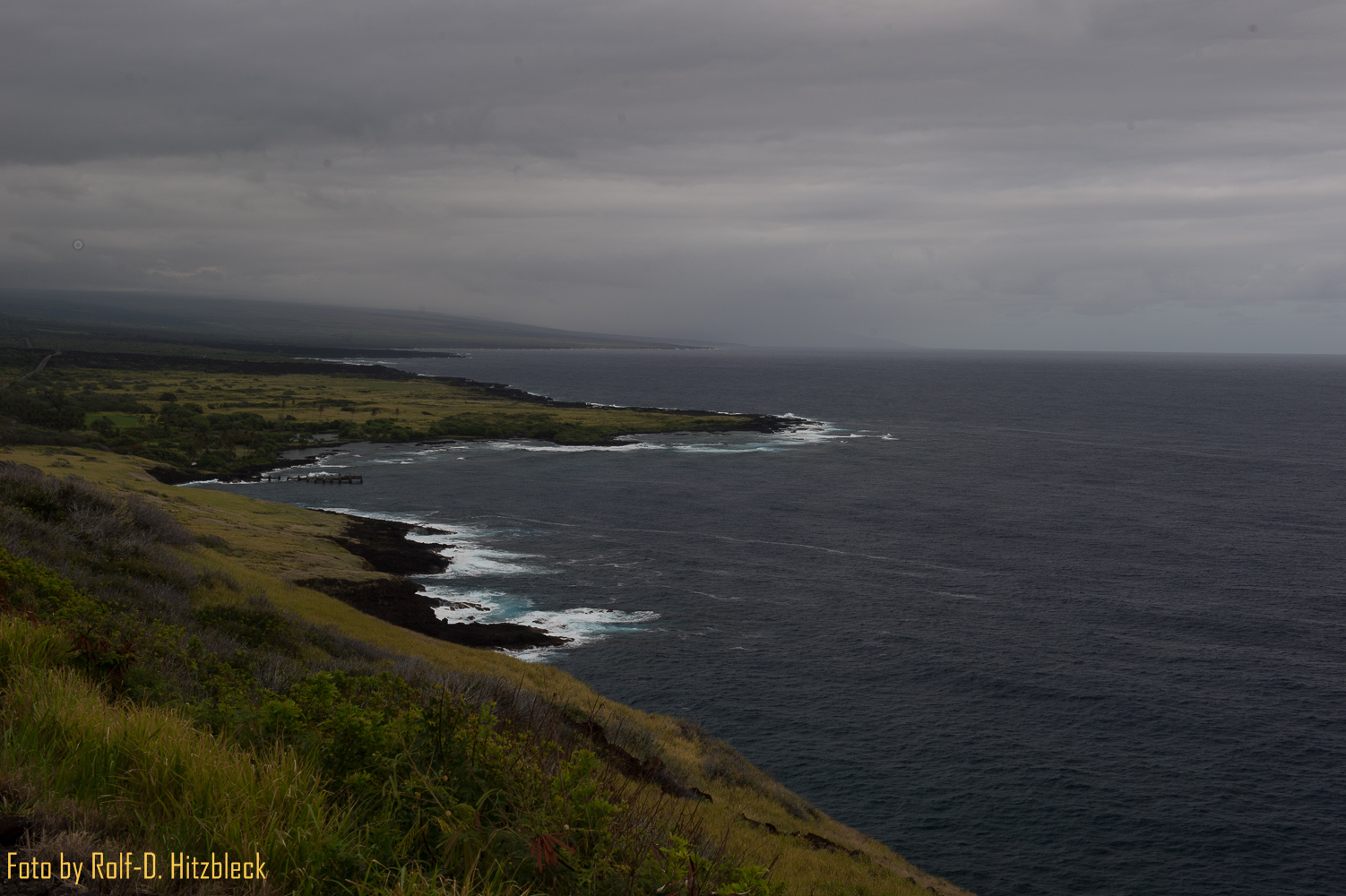 Also machten wir uns wirklich schon sehr früh (gegen 8 Uhr) auf den Weg. Diesmal nicht durch Kona durch, sondern oberhalb über die Schnellstraße. Auf dem Weg nach oben gibt es noch einen Viewpoint mit Blick über unsere „Wohnsiedlung“ (links daneben das Keauhou Shopping Center)