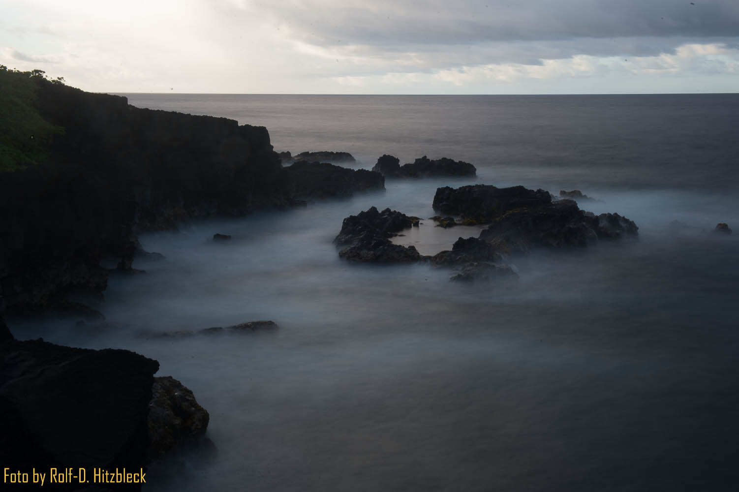 Also Kameraausrüstung und Stativ geschultert und an der Steilküste entlang gewandert. Und da waren sie auch schon: Die Gelegenheiten, die Wellen auf zwei total unterschiedliche Arten einzufangen. Erstens mit einer extremen Langzeitbelichtung (für die Technik-Freaks: ISO 50, Dank an die D4, ND Filter variabel, Blende 22, Zeitautomatik und dann am Filter solange gedreht, bis Belichtungszeiten von ca. 20 sek. dabei rauskamen):