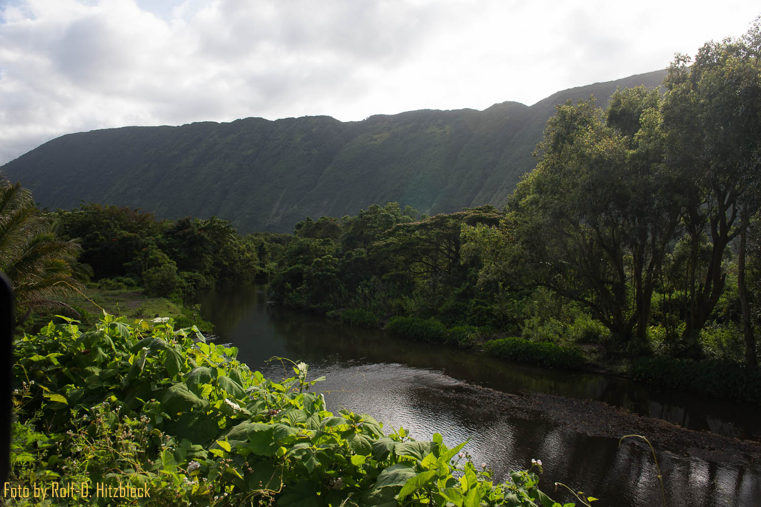 Der Himmel bläute noch immer und wir hatten schon einen guten Teil der Strecke zum Waipio Valley hinter uns gebracht. Warum also nicht einfach mal hinfahren? Entspricht zwar nicht den perfekten Vorstellungen von Erholung nach Jetlag, aber die Aussicht, dieses wunderschöne Tal mal im Sonnenschein zu erleben, war einfach zu verlockend.