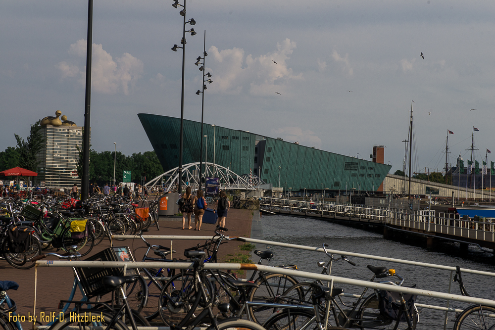 Dort eine kurze Pause am Wasser eingelegt und mit vielen vielen Fußgängern und Radfahrern über die Ij zurück. Habt Ihr gewusst, dass es in Amsterdam viele Fahrräder gibt?
