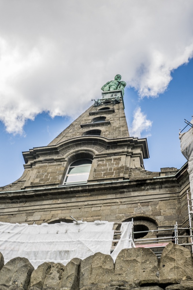 Nicht ganz so schräg, aber dafür wahnsinnig schön von der Konstruktion und von den Verzierungen her ist das Rathaus. Leider wurde dort gerade eine Bühne für eine Veranstaltung aufgebaut.
