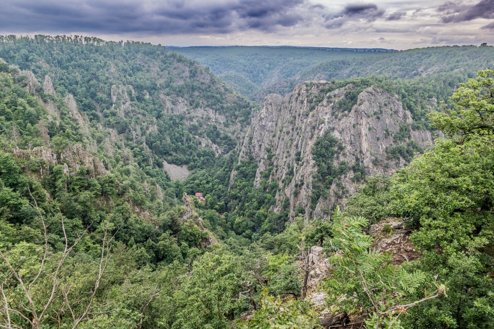 Wir klettern auf der anderen Seite der Fünffingerfelsen wieder runter und wandern am unteren Ende der Klusfelsen vorbei, wo schon 5 angeleinte Jagdhund wild kläffend auf ihre Besitzer warten (es war eine Aufpasserin dabei, die Hunde waren nicht alleine).