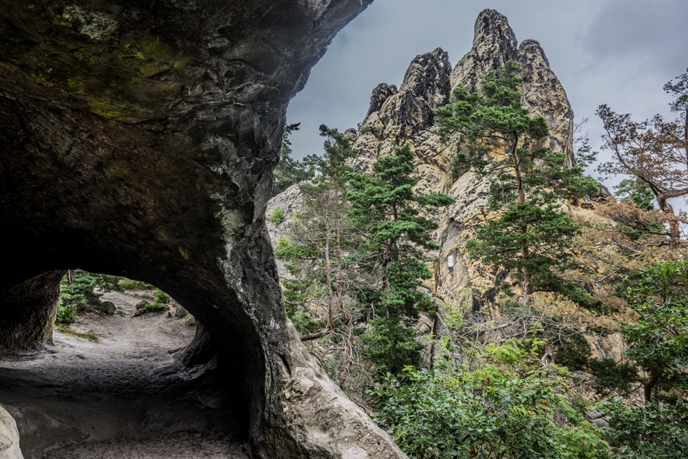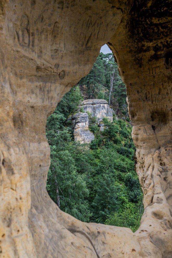 Durch eine Öffnung kann man noch einen weiteren, allerdings namenlosen Felsen sehen.