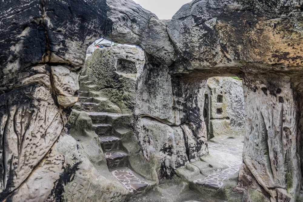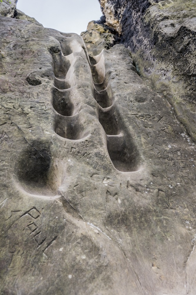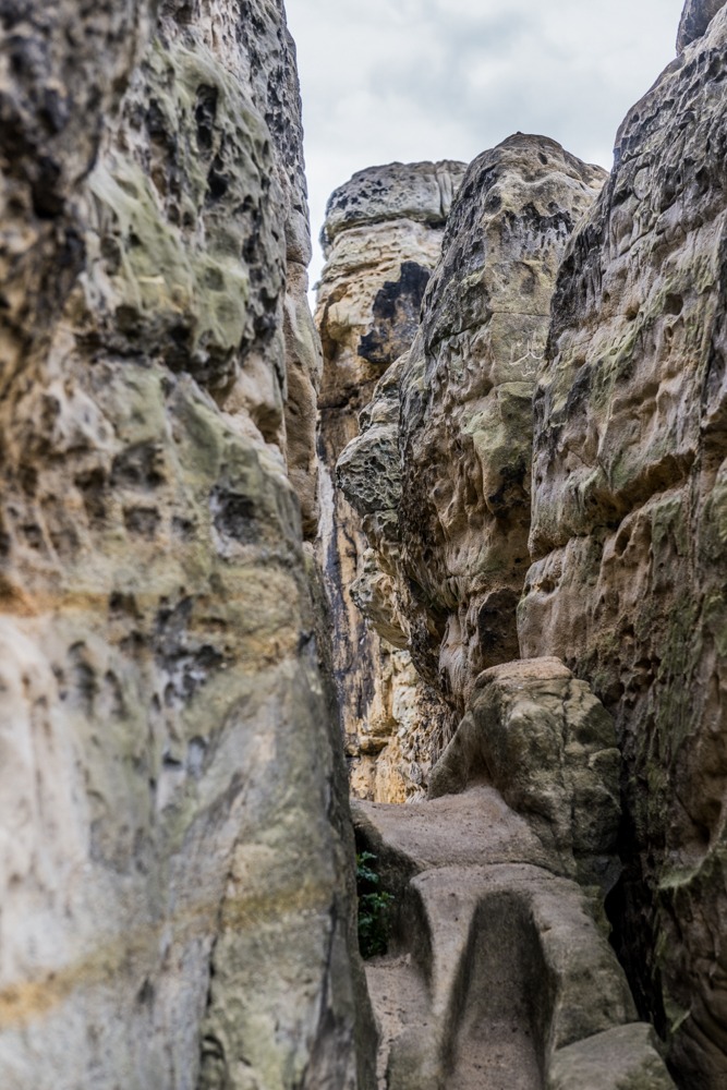 Ein Detail ist in den Felsen (nicht in Halberstadt) noch interessant: Die Stufen, die in dem Sandstein steil nach oben führen: