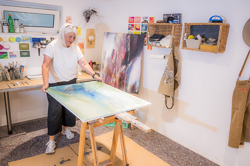 Inspiration ist für sie ein Zauberwort, das Sie in ihrem Tun beflügelt. Die Malerin arbeitet gerne seriell in ganz unterschiedlichen Bildformaten und fühlt sich besonders lebendig, wenn sie eine künstlerische Entwicklung in ihrem Werk ablesen kann, genauso wie in ihrem unmittelbaren Schaffensprozess. Ihr Leben spiegelt sich in ihrem Kunstschaffen wider. Doch das erläutert sie lieber in einem persönlichen Gespräch in ihrem Atelier anhand ihrer Kunstwerke.