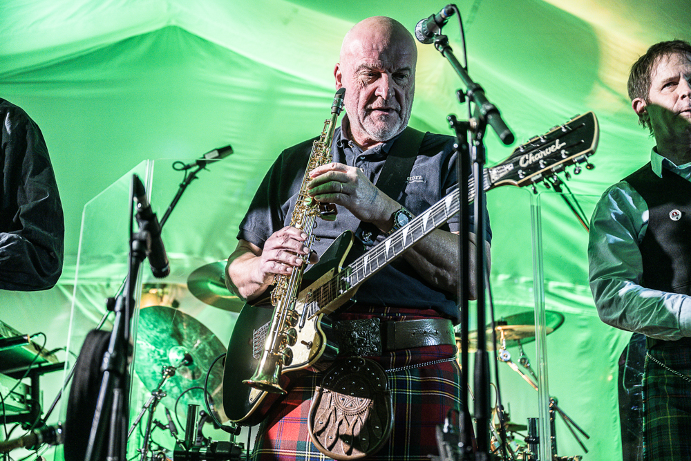 Als die in traditioneller schottischer Kleidung gewandete Band die Bühne betrat, füllte sich der Raum sofort mit dem markanten Klang von Dudelsack, Geige und Rock-Rhythmussektion. Die Band schaffte es mühelos, traditionelle Melodien mit druckvollen Gitarren und treibendem Schlagzeug zu verbinden. Der Sound war rau, erdig und zugleich präzise – genau das, was Celtic Rock ausmacht. Schon nach den ersten Stücken wippte das Publikum im Takt, klatschte mit und ließ sich von der Energie der Band tragen. Logisch, dass auch einige Zuschauer ihre Sympathie zur Band durch Tragen von Kilts zeigte.