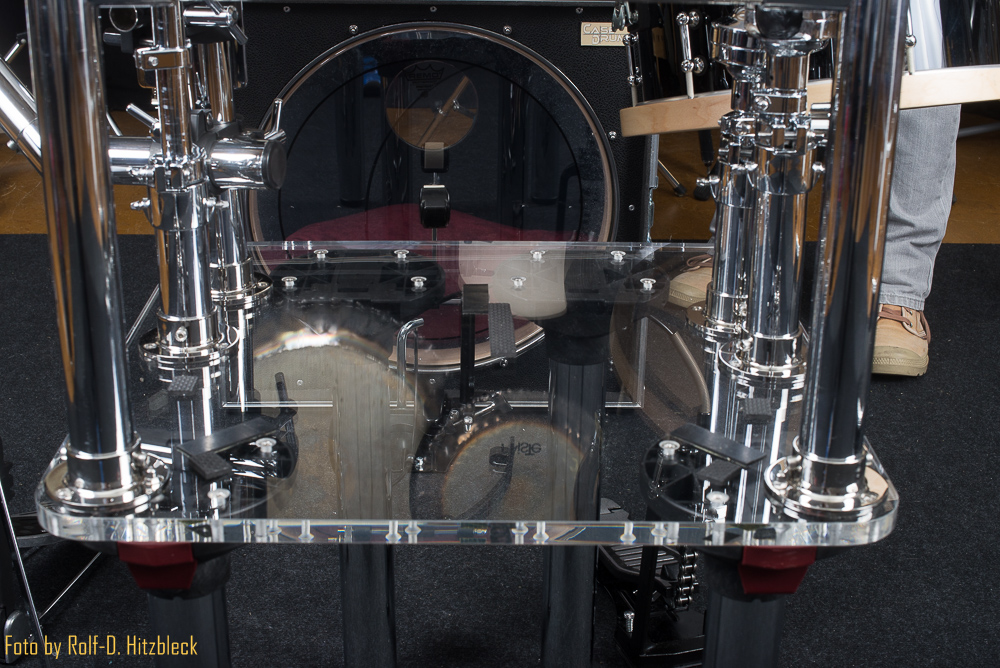 Etwas problematisch wurde es, als Tony seine eigene Snare-Drum einbauen wollte. Die Halterung war für eine Snare mit 8 Stimmschrauben ausgelegt. Tony hatte aber eine mit 10 Stimmschrauben…. Aber unter den 86 Snare-Drums, die er sein eigen nennt, sollte sich doch eine passende finden. Tat es dann auch.